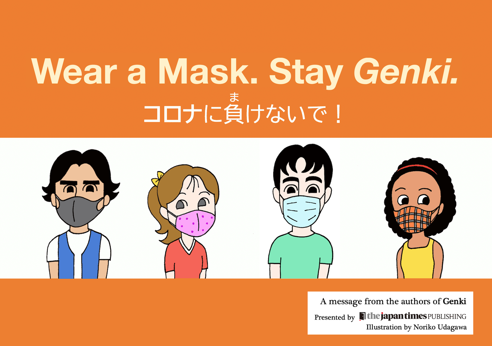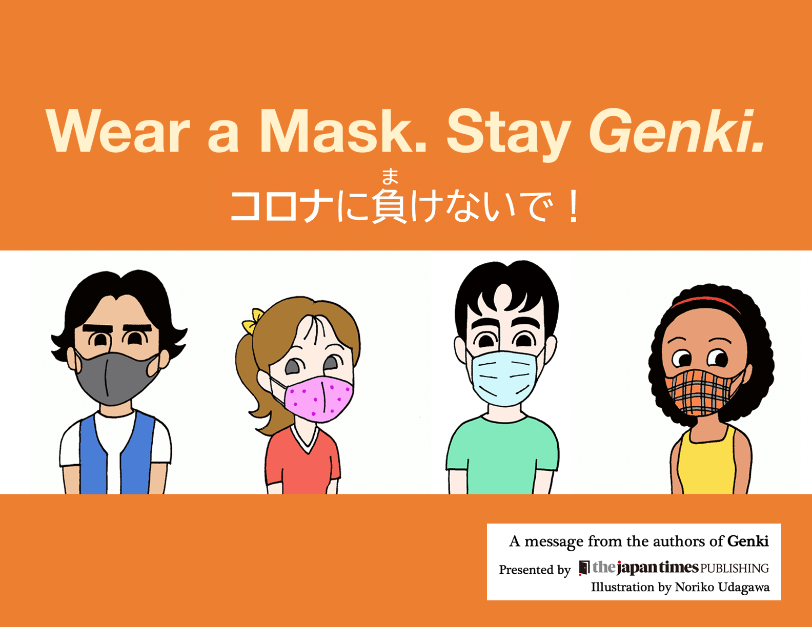 This “Encouragement through Illustrations” project was initiated by the author of “Genki”, Professor Yutaka Ohno of Ritsumeikan University. If you are a creator of a Japanese language textbook and would like to support this project, please contact “jp-kyoten[at]un.tsukuba.ac.jp” with an encouraging illustration.